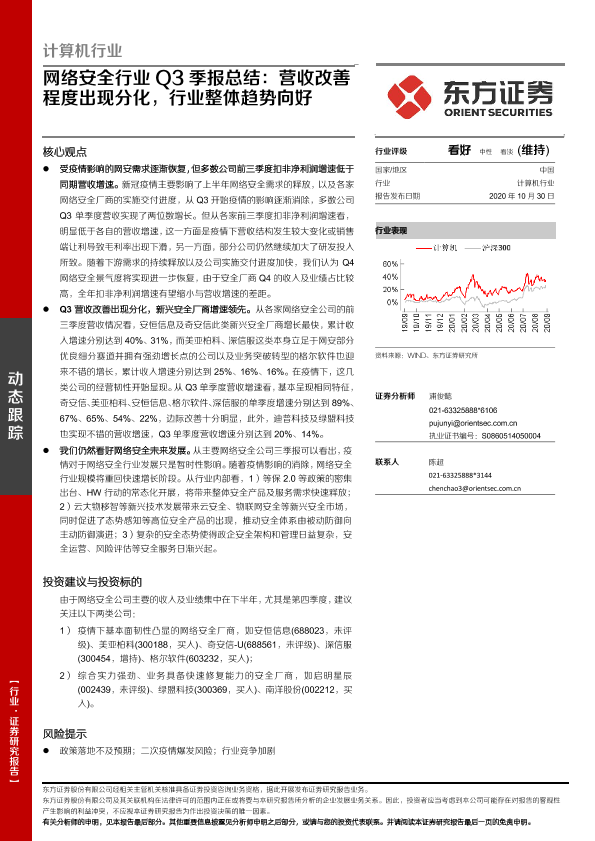 【东方证券】【20201030】计算机行业:网络安全行业Q3季报总结:营收改善程度出现分化,行业整体趋势向好-4页