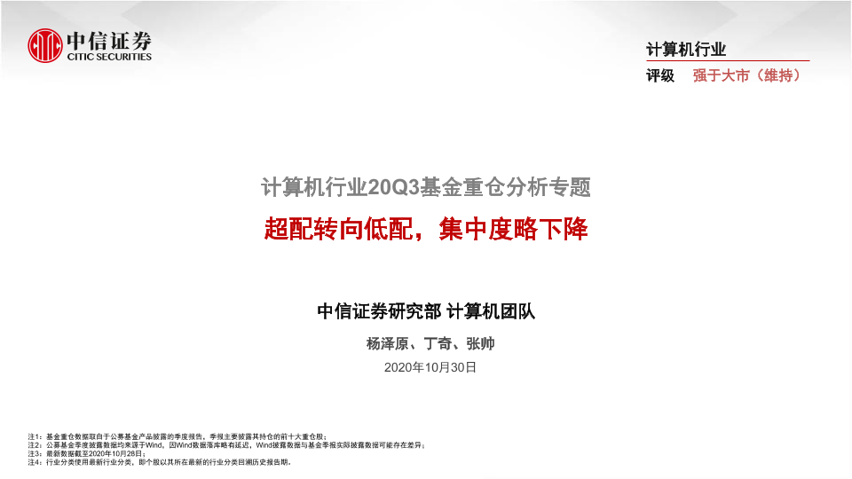 【中信证券】【20201030】计算机行业20Q3基金重仓分析专题:超配转向低配,集中度略下降-15页