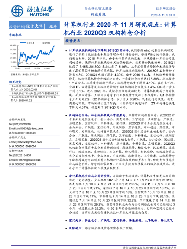 【海通证券】【20201101】计算机行业2020年11月研究观点:计算机行业2020Q3机构持仓分析-4页