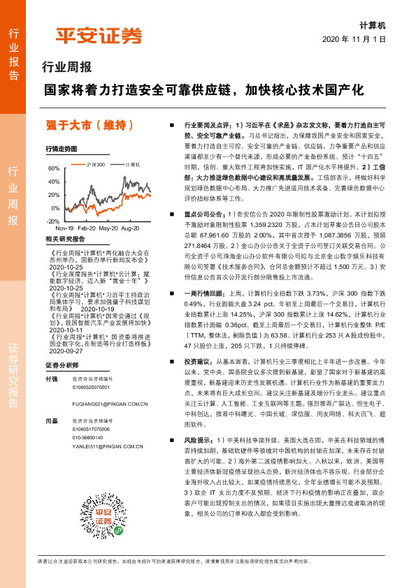 【平安证券】【20201101】计算机行业周报:国家将着力打造安全可靠供应链,加快核心技术国产化-6页