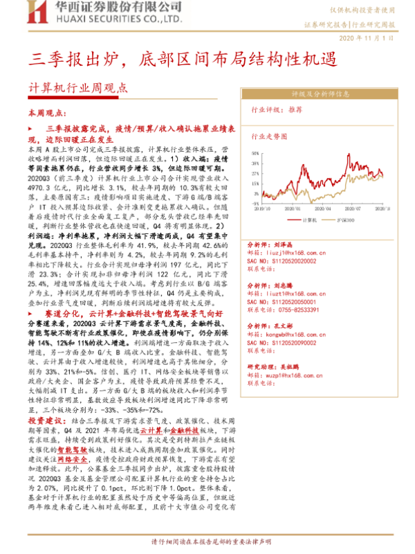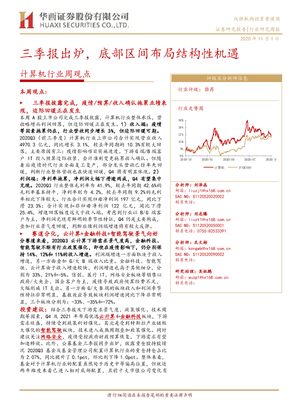 【华西证券】【20201101】20201101-华西证券-计算机行业周观点:三季报出炉,底部区间布局结构性机遇-26页