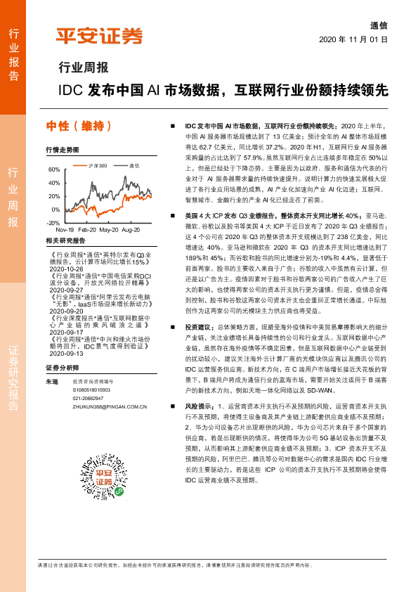 【平安证券】【20201101】IDC发布中国AI市场数据,互联网行业份额持续领先-6页