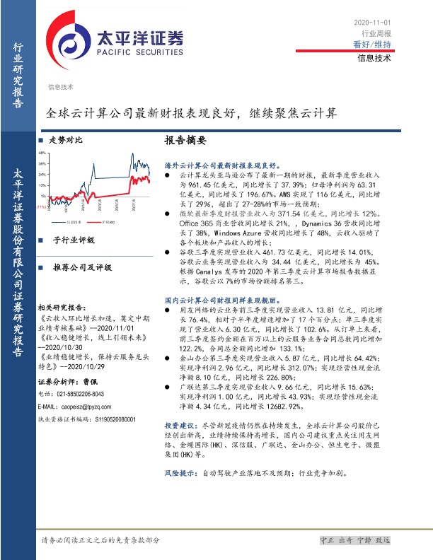 【太平洋证券】【20201101】信息技术行业周报:全球云计算公司最新财报表现良好,继续聚焦云计算-3页