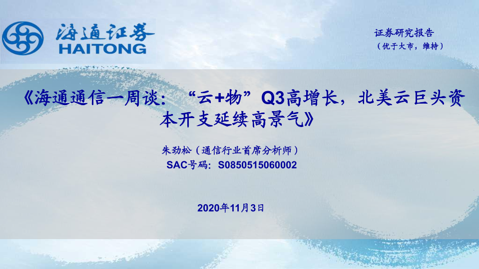 【海通证券】【20201103】海通通信一周谈:“云+物”Q3高增长,北美云巨头资本开支延续高景气-11页