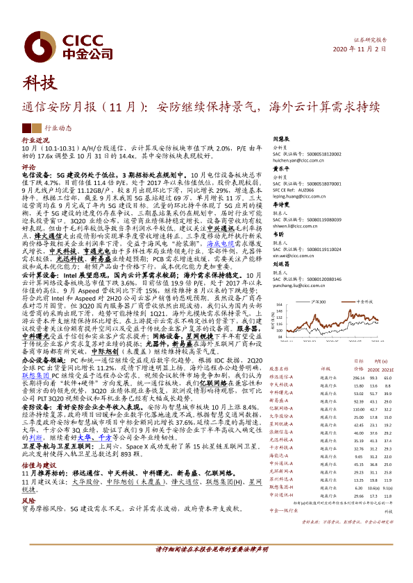 【中金公司】【20201102】通信安防月报(11月):安防继续保持景气,海外云计算需求持续-23页
