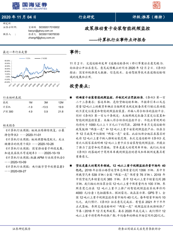 【国海证券】【20201104】政策推动重卡安装智能视频监控——计算机行业事件点评报告-4页