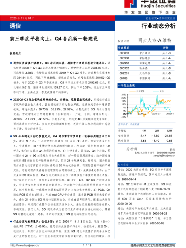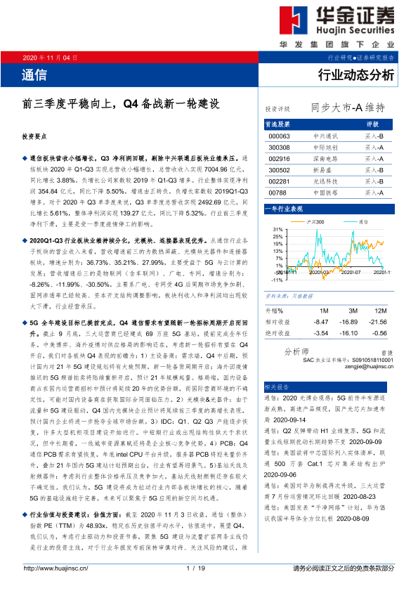 【华金证券】【20201104】通信:前三季度平稳向上,Q4备战新一轮建设-19页