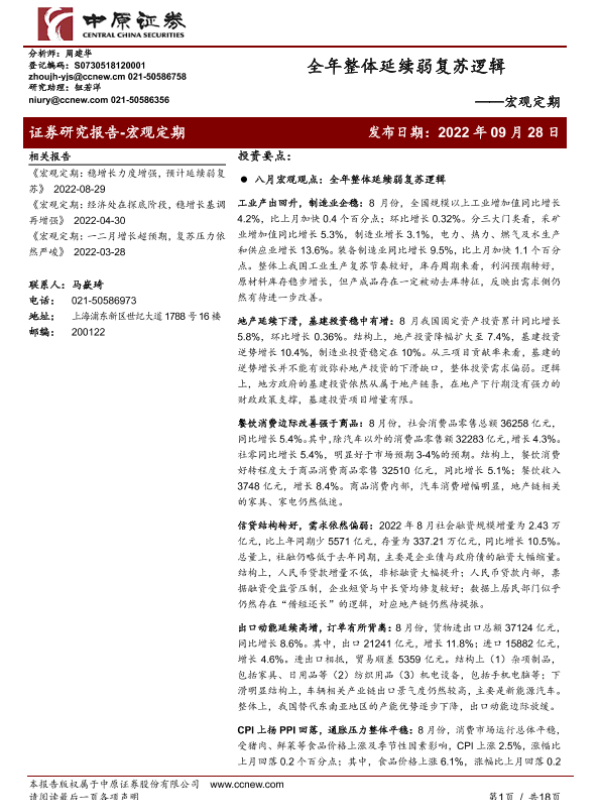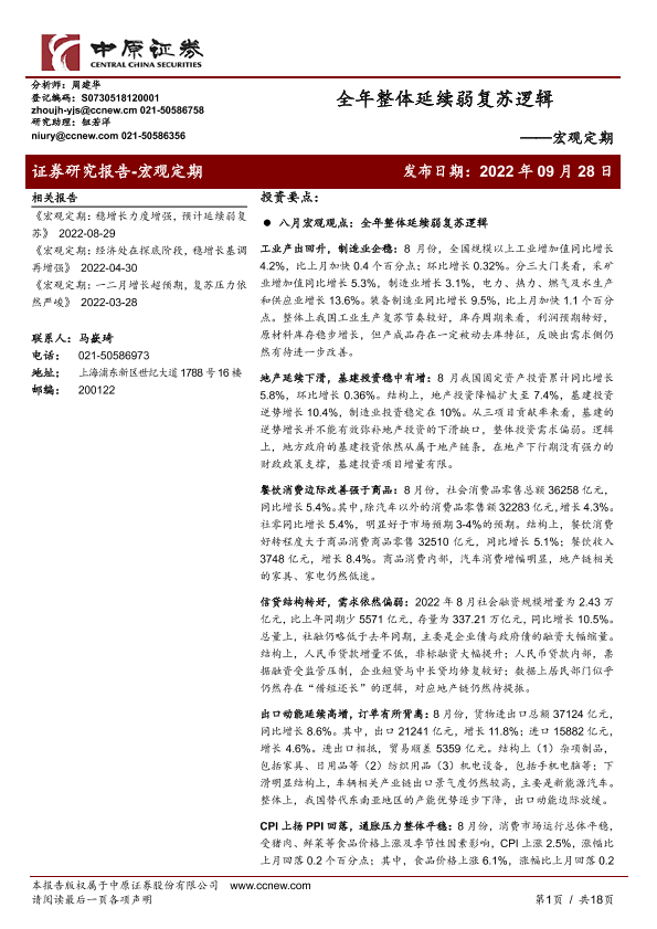 【中原证券】【20220928】全年整体延续弱复苏逻辑-18页