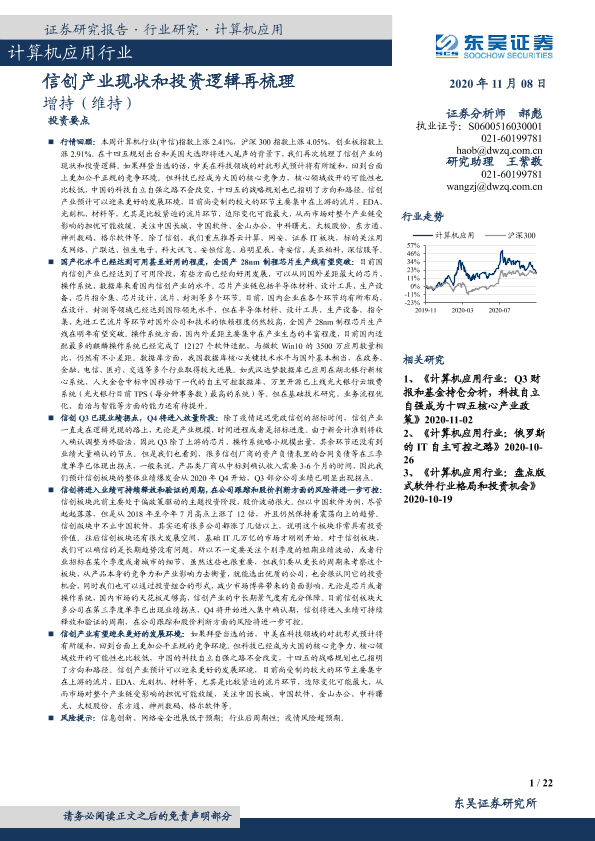 【东吴证券】【20201108】计算机应用行业:信创产业现状和投资逻辑再梳理-22页