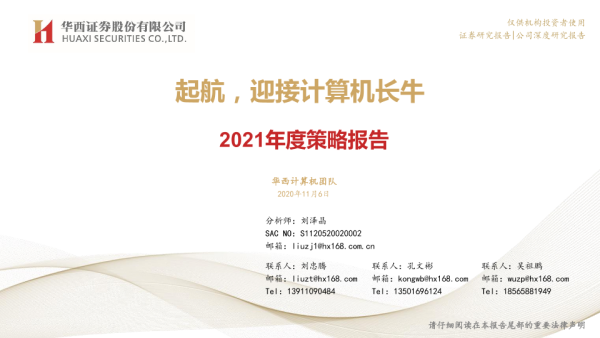 【华西证券】【20201106】计算机行业2021年度策略报告:起航,迎接计算机长牛-72页