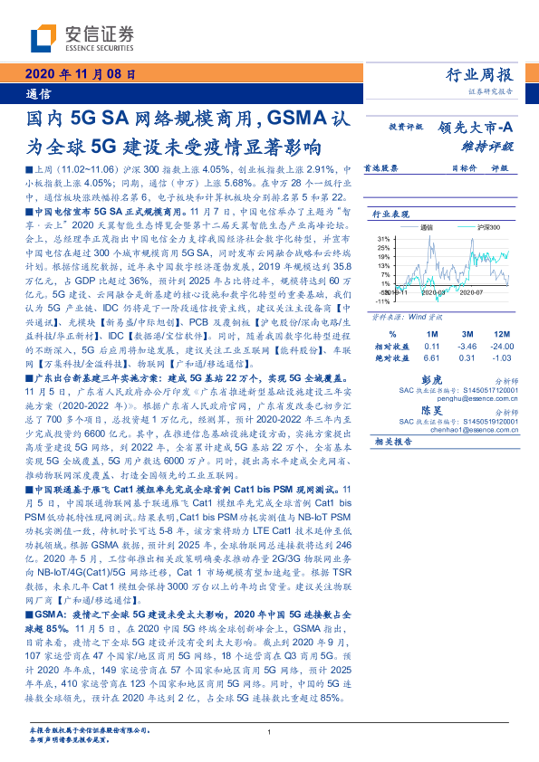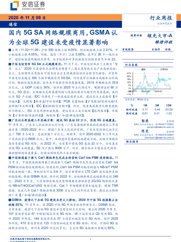 【安信证券】【20201108】国内5GSA网络规模商用,GSMA认为全球5G建设未受疫情显著影响-14页