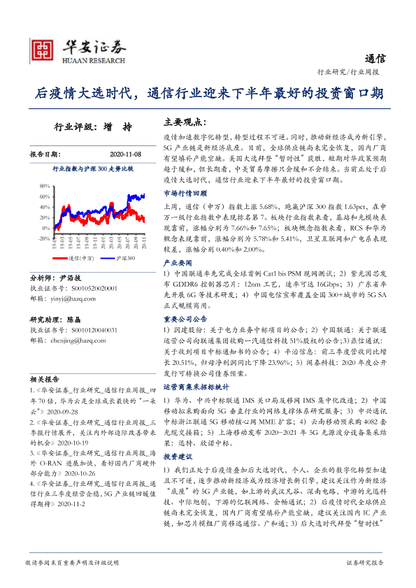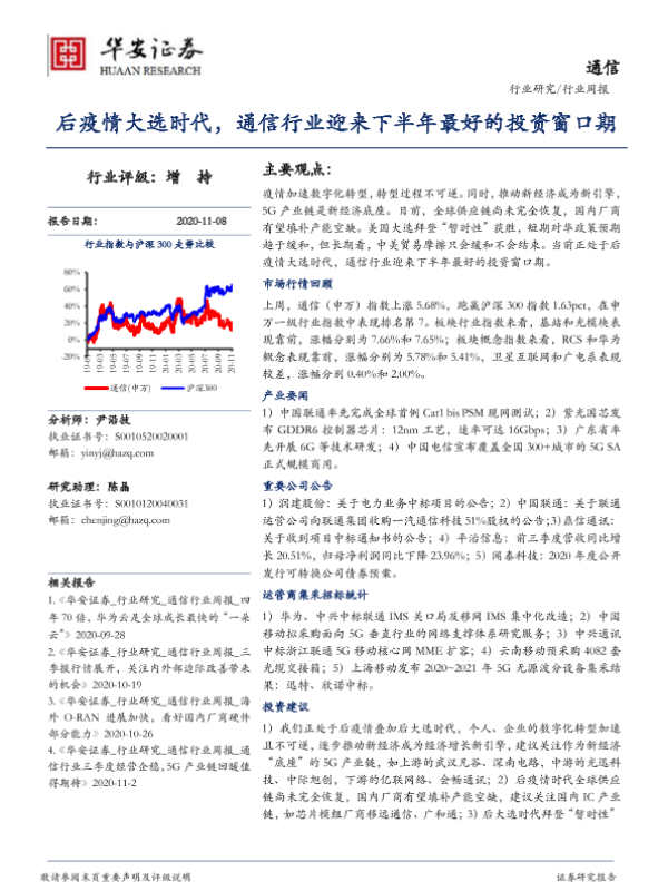 【华安证券】【20201108】20201108-华安证券-通信行业周报:后疫情大选时代,通信行业迎来下半年最好的投资窗口期-17页