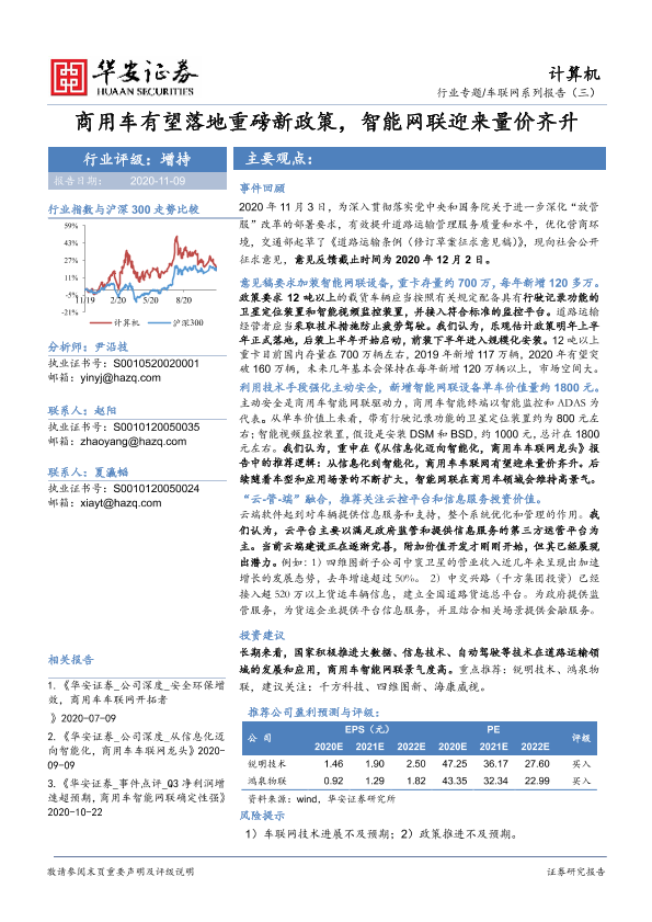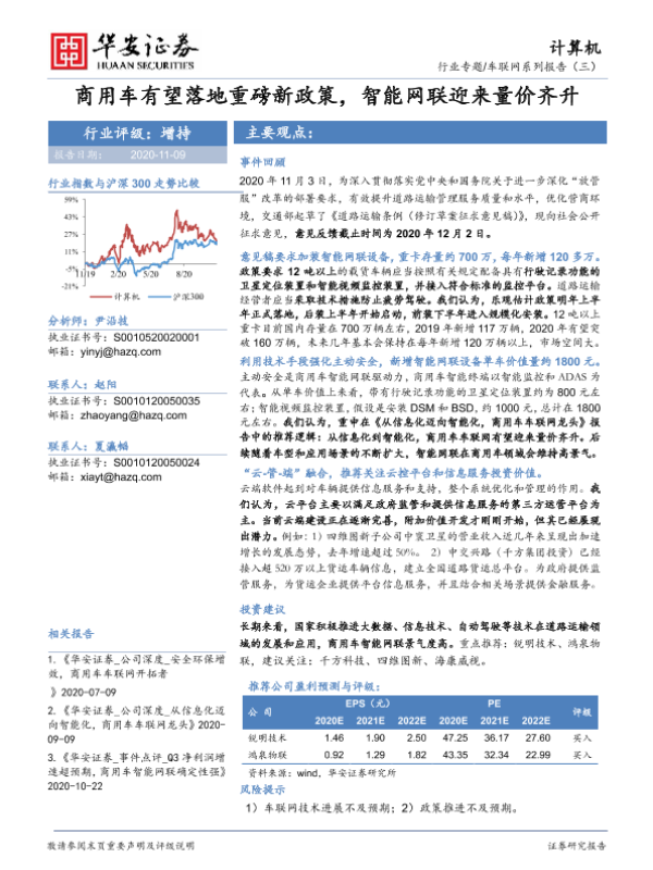 【华安证券】【20201109】计算机行业车联网系列报告(三):商用车有望落地重磅新政策,智能网联迎来量价齐升-20页