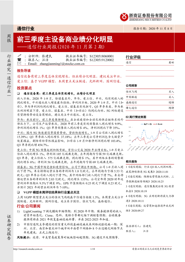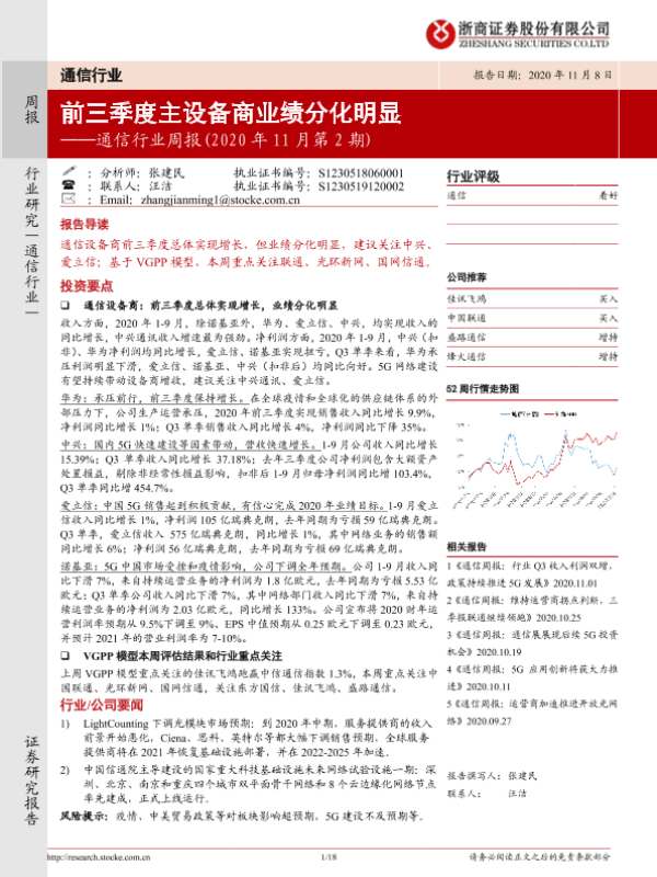 【浙商证券】【20201108】20201108-浙商证券-通信行业周报(2020年11月第2期):前三季度主设备商业绩分化明显-18页