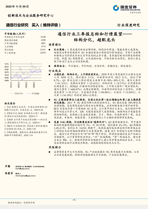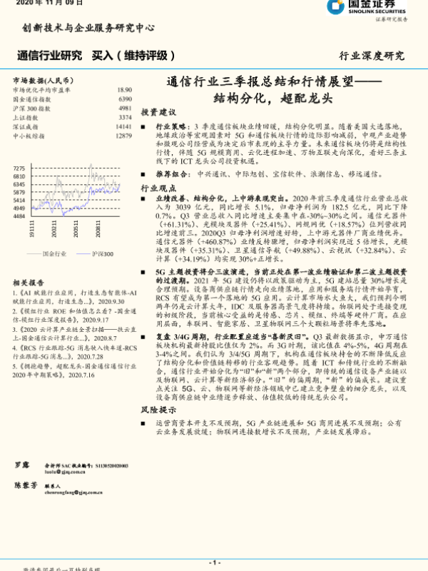 【国金证券】【20201109】通信行业三季报总结和行情展望:结构分化,超配龙头-22页