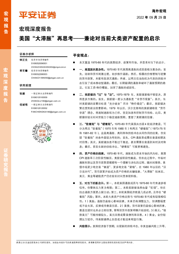 【平安证券】【20220929】宏观深度报告:美国“大滞胀”再思考,兼论对当前大类资产配置的启示-24页