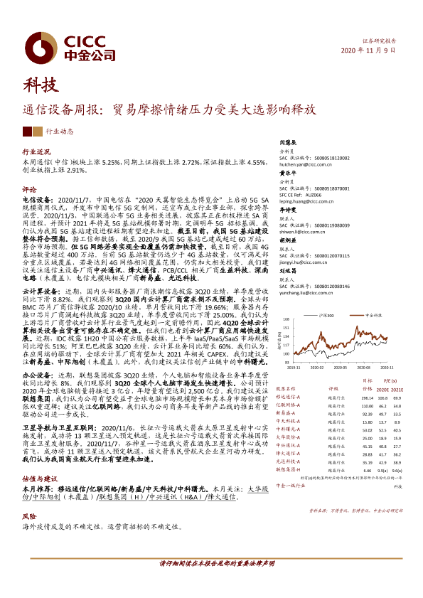 【中金公司】【20201109】通信设备周报:贸易摩擦情绪压力受美大选影响释放-11页