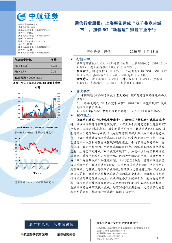 【中航证券】【20201113】通信行业周报:上海率先建成“双千兆宽带城市”,加快5G“新基建”赋能百业千行-3页
