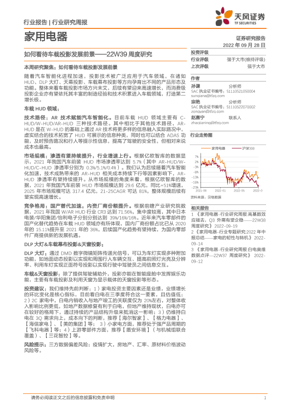 【天风证券】【20220928】家用电器22W39周度研究:如何看待车载投影发展前景-15页
