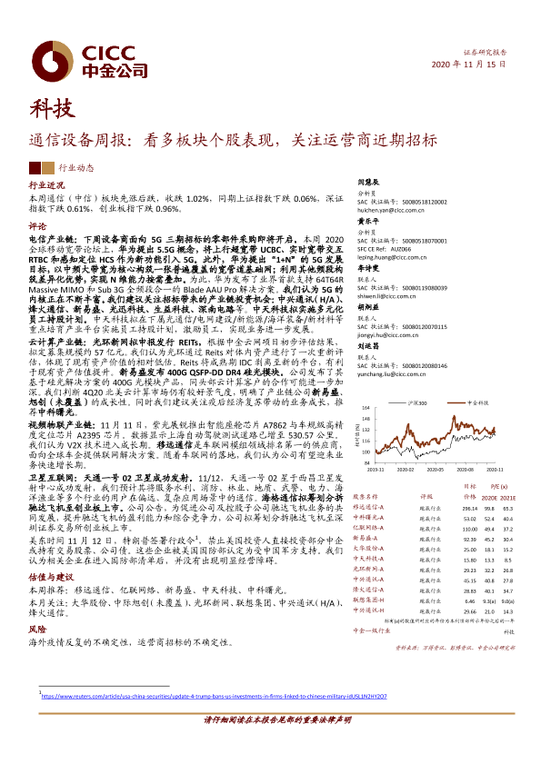 【中金公司】【20201115】通信设备周报:看多板块个股表现,关注运营商近期招标-9页