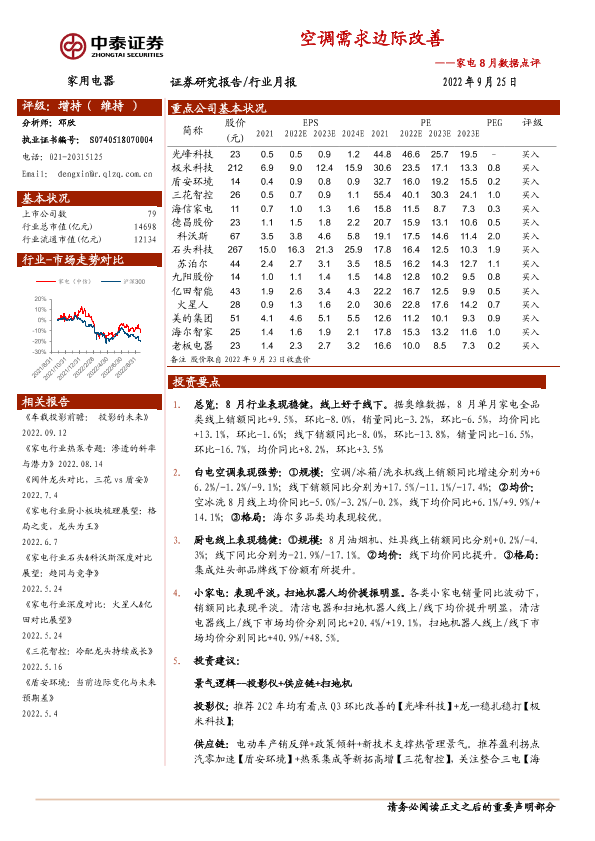 【中泰证券】【20220925】家用电器行业8月数据点评:空调需求边际改善-16页