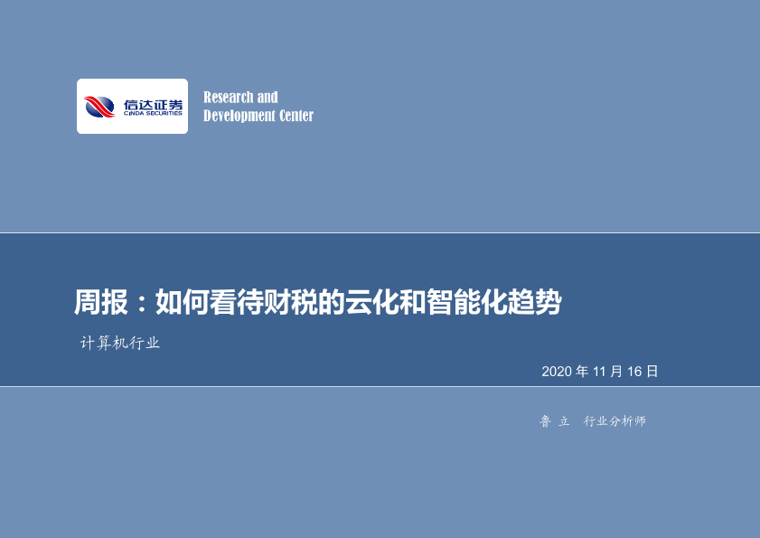 【信达证券】【20201116】20201116-信达证券-计算机行业周报:如何看待财税的云化和智能化趋势-18页