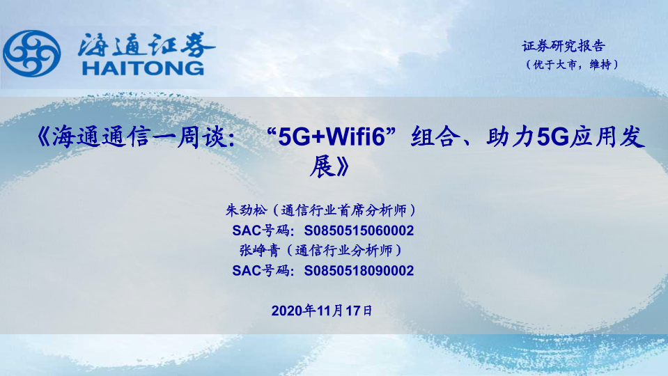 【海通证券】【20201117】“5G+Wifi6”组合、助力5G应用发展-11页