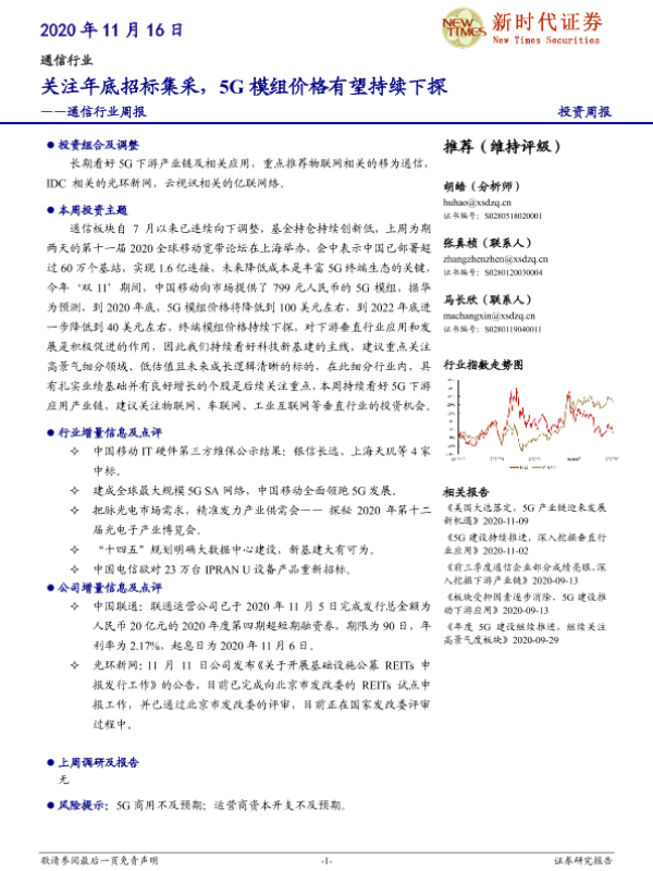 【新时代证券】【20201116】通信行业周报:关注年底招标集采,5G模组价格有望持续下探-18页