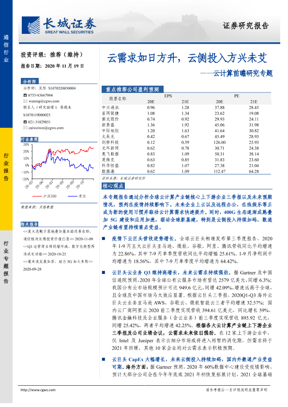 【长城证券】【20201119】20201119-长城证券-云计算前瞻研究专题:云需求如日方升,云侧投入方兴未艾-43页