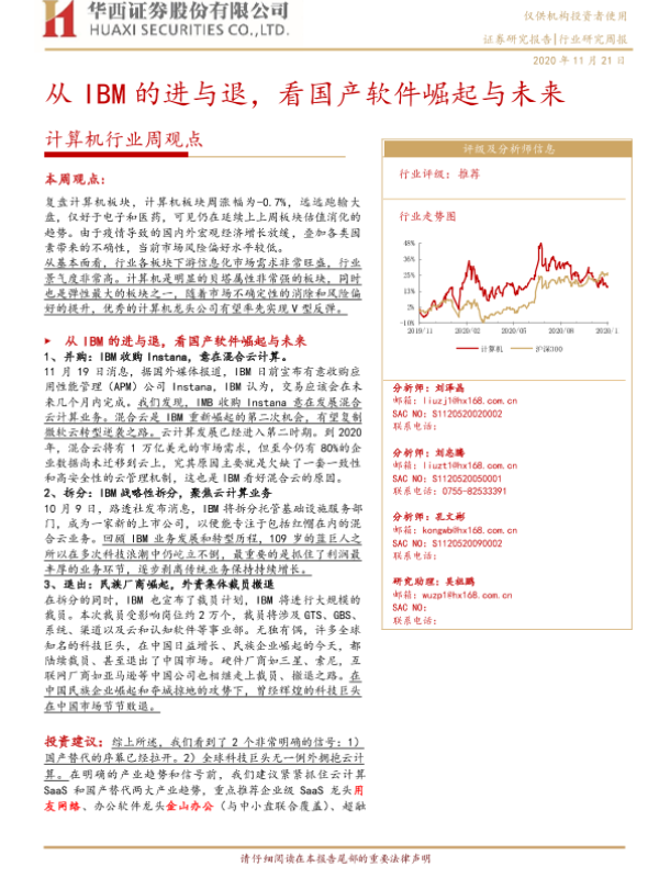 【华西证券】【20201121】20201121-华西证券-计算机行业周观点:从IBM的进与退,看国产软件崛起与未来-18页
