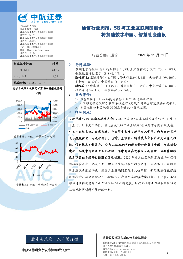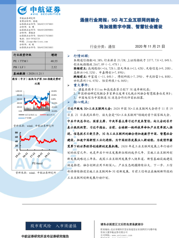 【中航证券】【20201121】通信行业周报:5G与工业互联网的融合将加速数字中国、智慧社会建设-3页