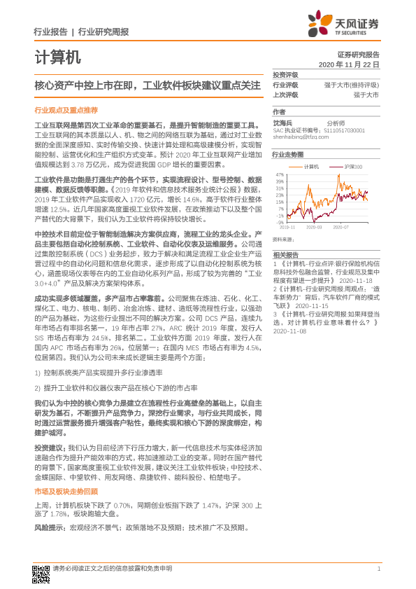 【天风证券】【20201122】计算机行业研究周报:核心资产中控上市在即,工业软件板块建议重点关注-9页