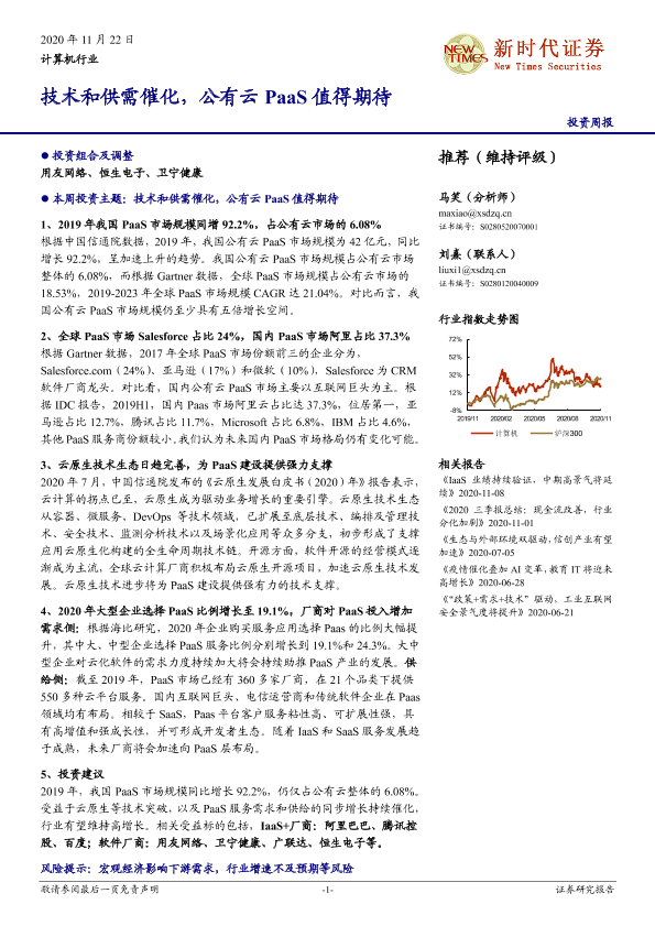 【新时代证券】【20201122】计算机行业投资周报:技术和供需催化,公有云PaaS值得期待-20页
