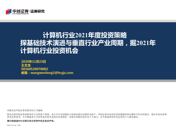 【华创证券】【20201123】计算机行业2021年度投资策略:探基础技术演进与垂直行业产业周期,掘2021年计算机行业投资机会-41页
