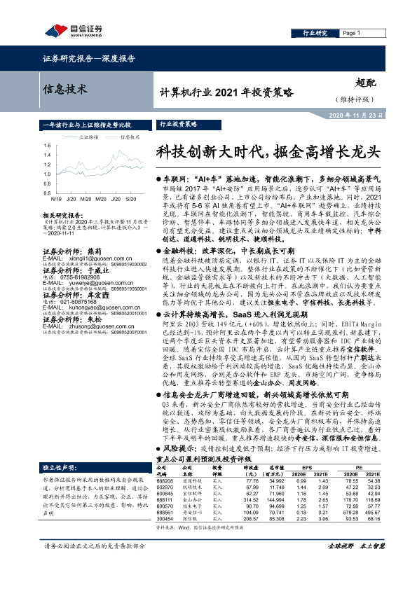 【国信证券】【20201123】计算机行业2021年投资策略:科技创新大时代,掘金高增长龙头-59页
