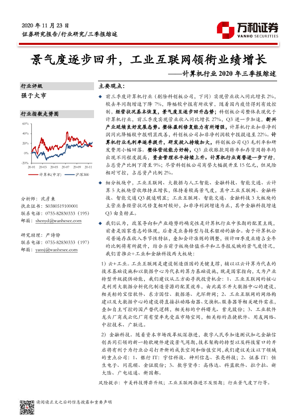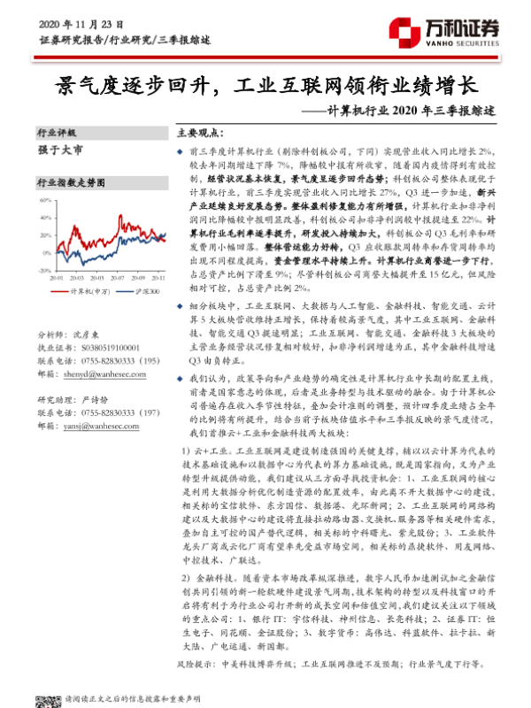 【万和证券】【20201123】计算机行业2020年三季报综述:景气度逐步回升,工业互联网领衔业绩增长-19页
