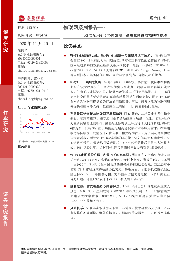 【东莞证券】【20201126】物联网系列报告一:5G与Wi-Fi6协同发展,高质量网络与物联网驱动-27页