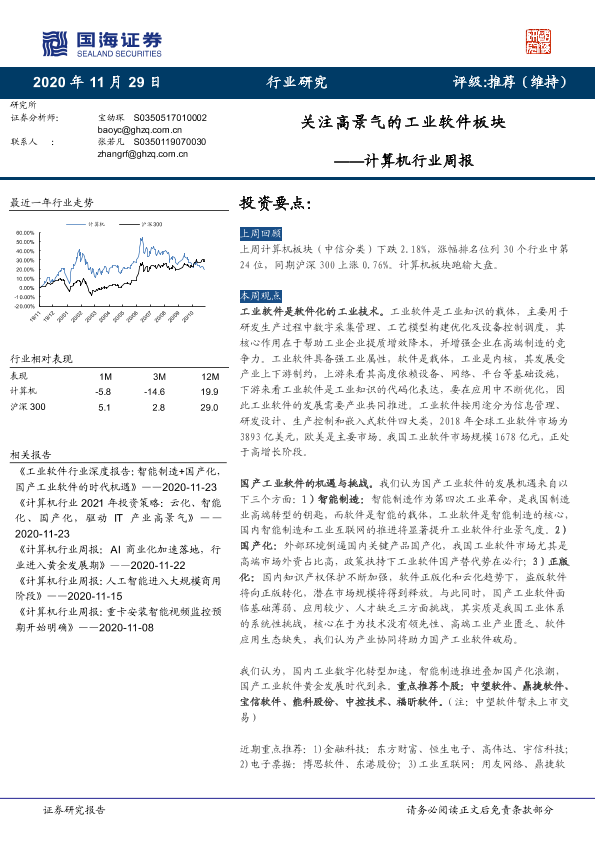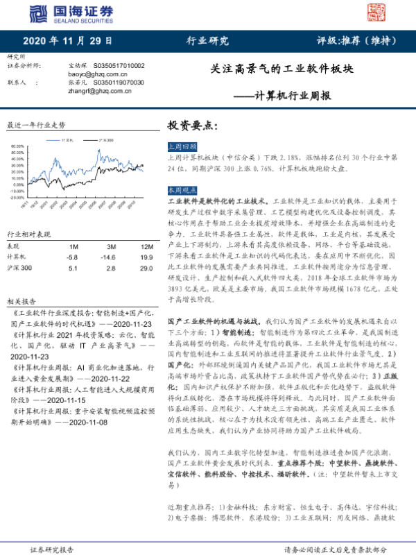 【国海证券】【20201129】计算机行业周报:关注高景气的工业软件板块-20页