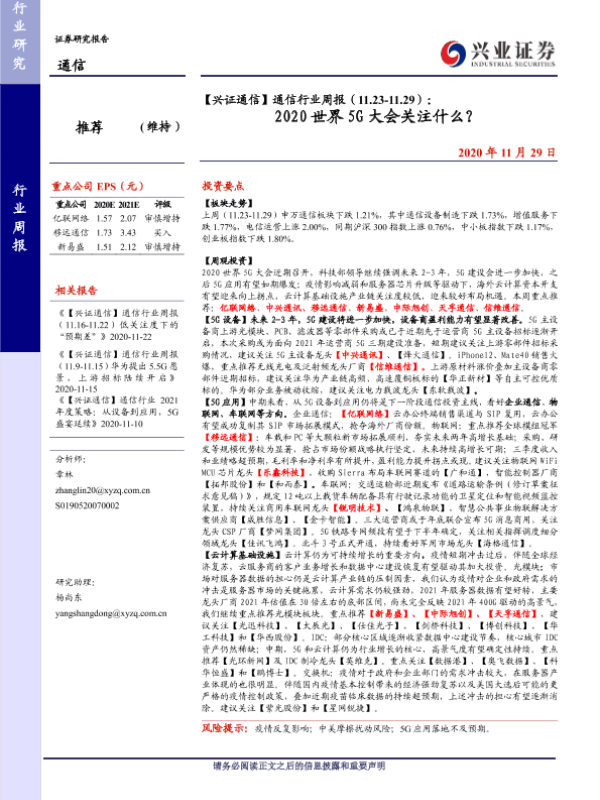 【兴业证券】【20201129】【兴证通信】通信行业周报(11.23-11.29):2020世界5G大会关注什么?-8页
