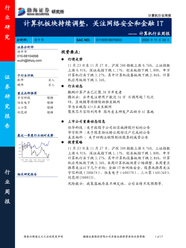 【渤海证券】【20201130】20201130-渤海证券-计算机行业周报:计算机板块持续调整,关注网络安全和金融IT-17页