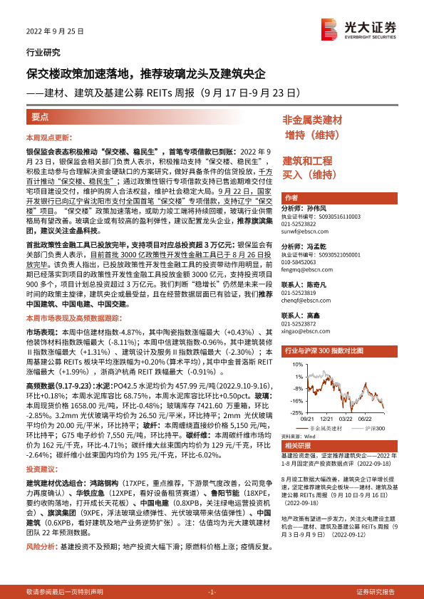 【光大证券】【20220925】建材、建筑及基建行业公募REITs周报:保交楼政策加速落地,推荐玻璃龙头及建筑央企-21页