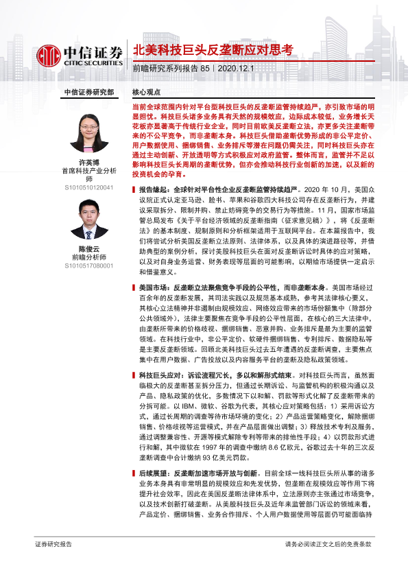 【中信证券】【20201201】科技行业:前瞻研究系列报告85-北美科技巨头反垄断应对思考-20页