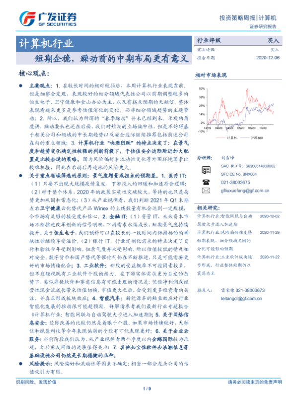 【广发证券】【20201206】计算机行业:短期企稳,躁动前的中期布局更有意义-9页