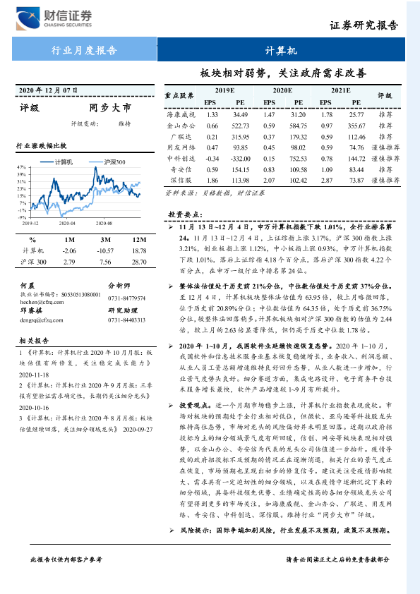 【财信证券】【20201207】计算机行业月度报告:板块相对弱势,关注政府需求改善-10页