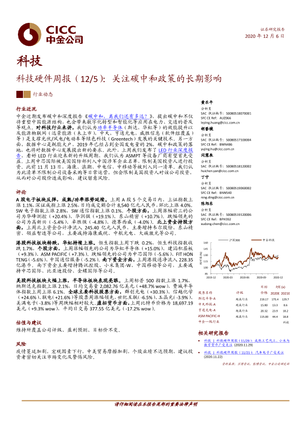 【中金公司】【20201206】科技硬件行业周报:关注碳中和政策的长期影响-13页