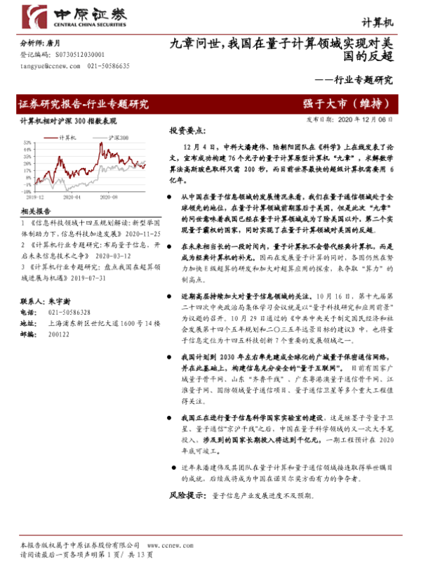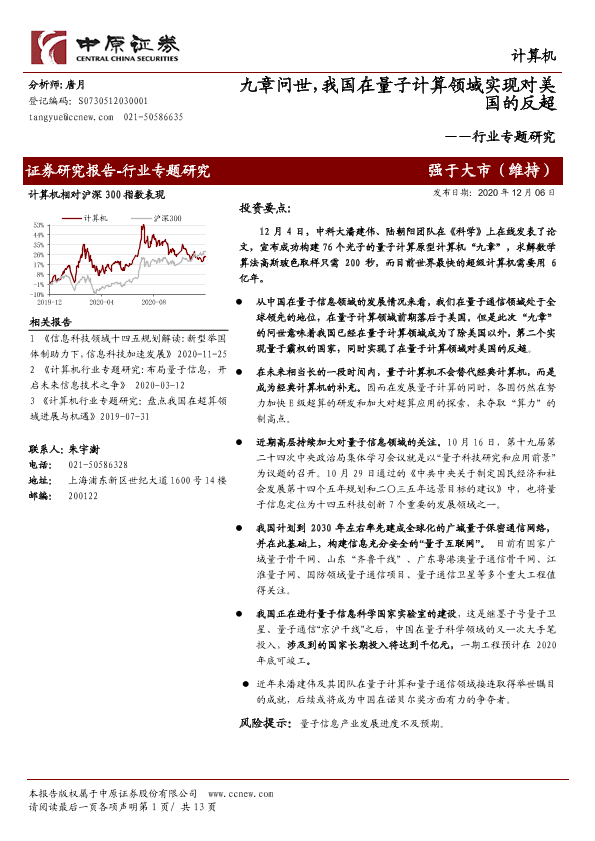 【中原证券】【20201206】20201206-中原证券-计算机行业专题研究:九章问世,我国在量子计算领域实现对美国的反超-13页