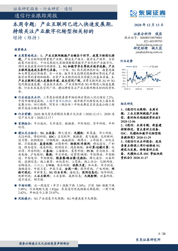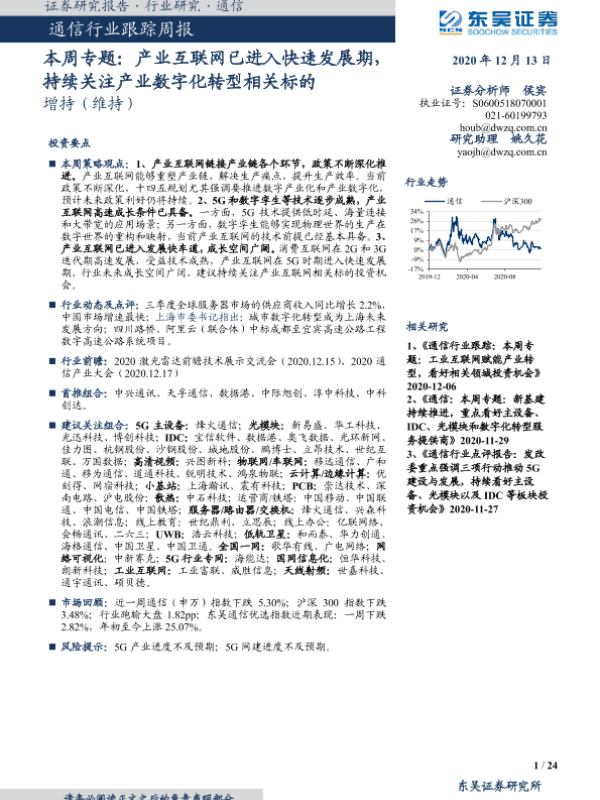 【东吴证券】【20201213】通信行业跟踪周报:本周专题:产业互联网已进入快速发展期,持续关注产业数字化转型相关标的-24页