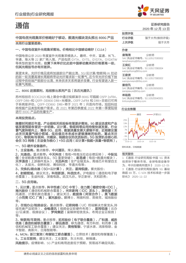 【天风证券】【20201213】通信行业研究周报:中国电信光缆集采价格略好于移动,数通光模块龙头推出800G产品-14页