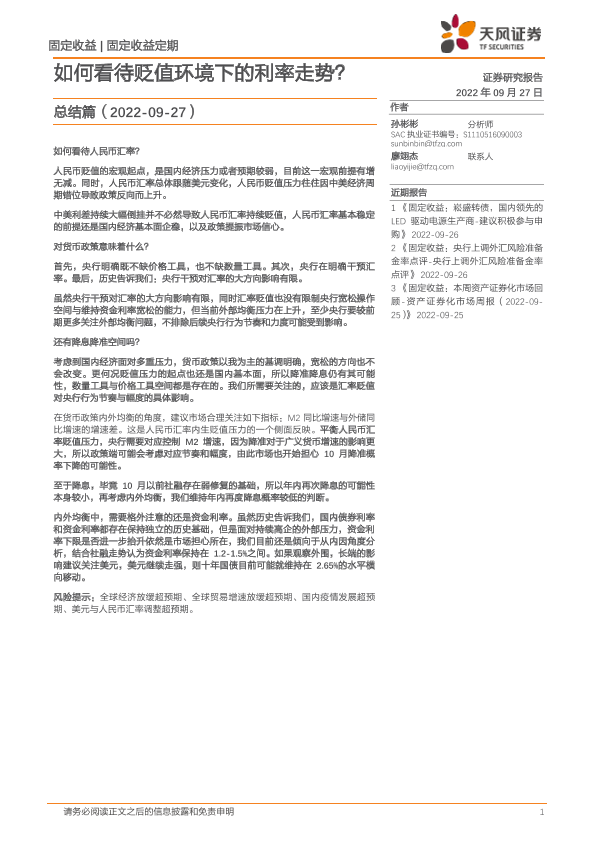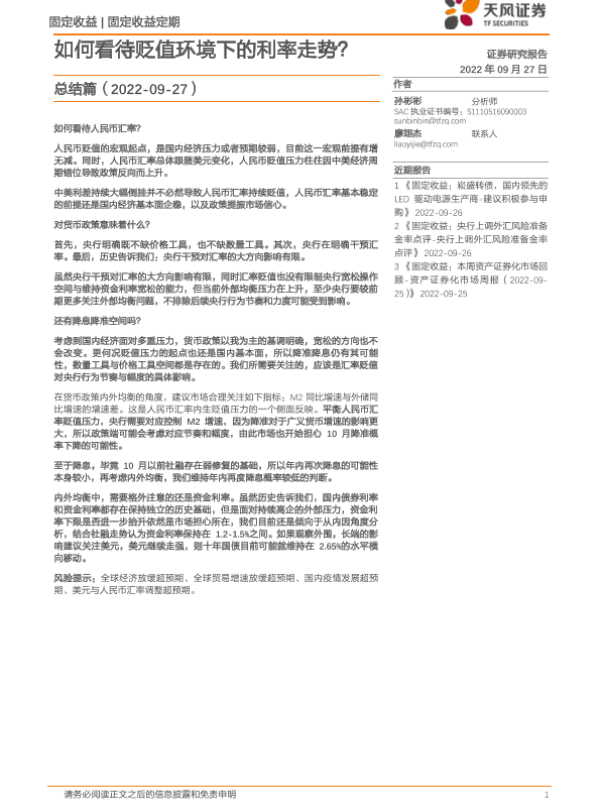 【天风证券】【20220927】总结篇:如何看待贬值环境下的利率走势?-18页