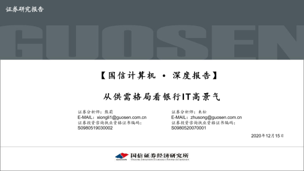 【国信证券】【20201215】从供需格局看银行IT高景气-55页